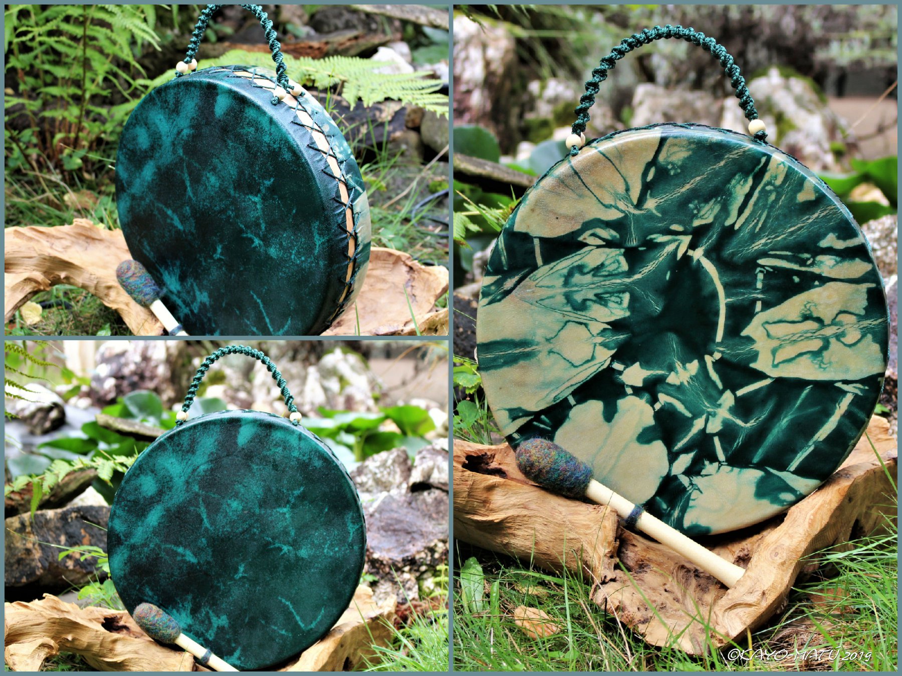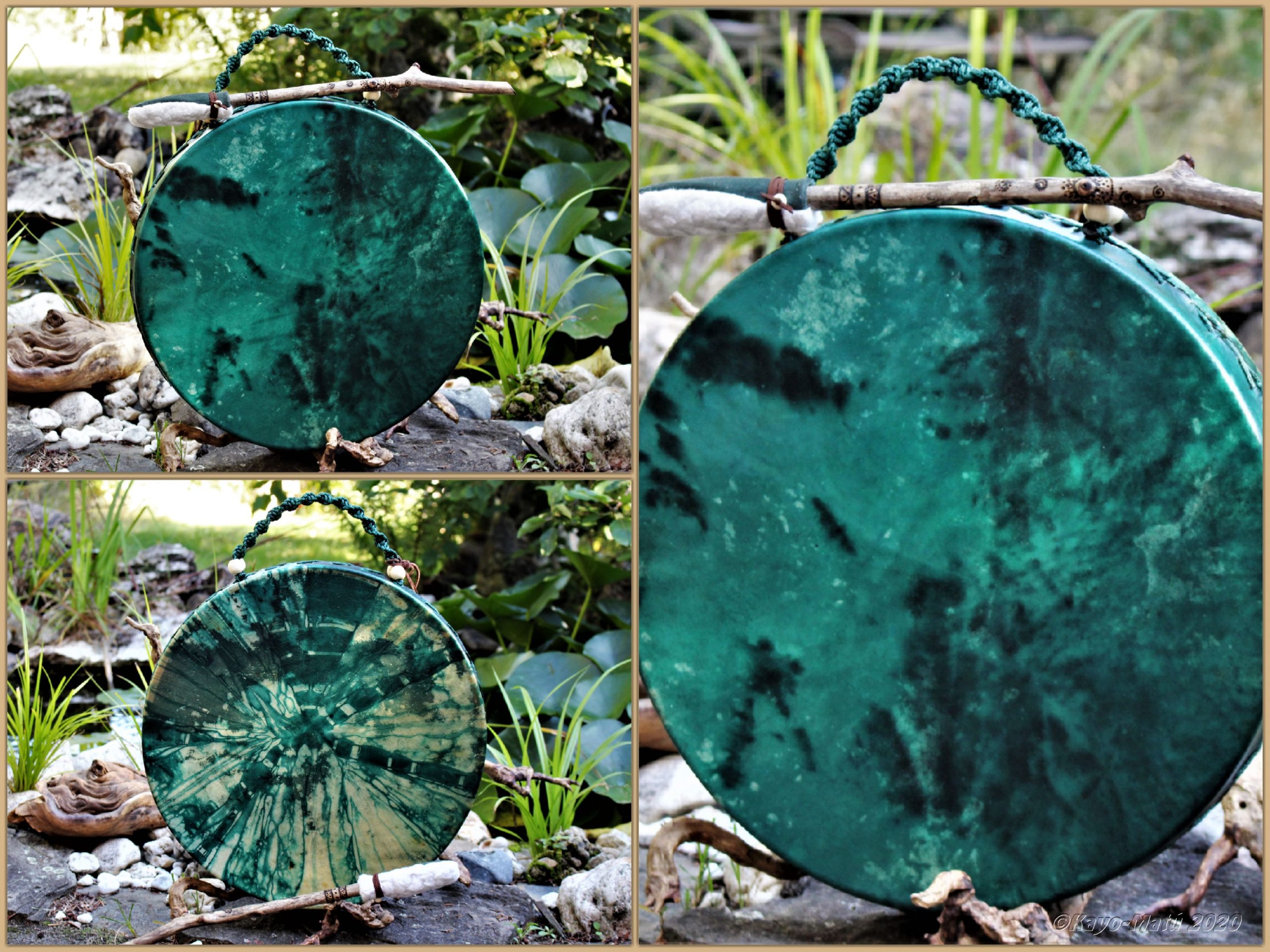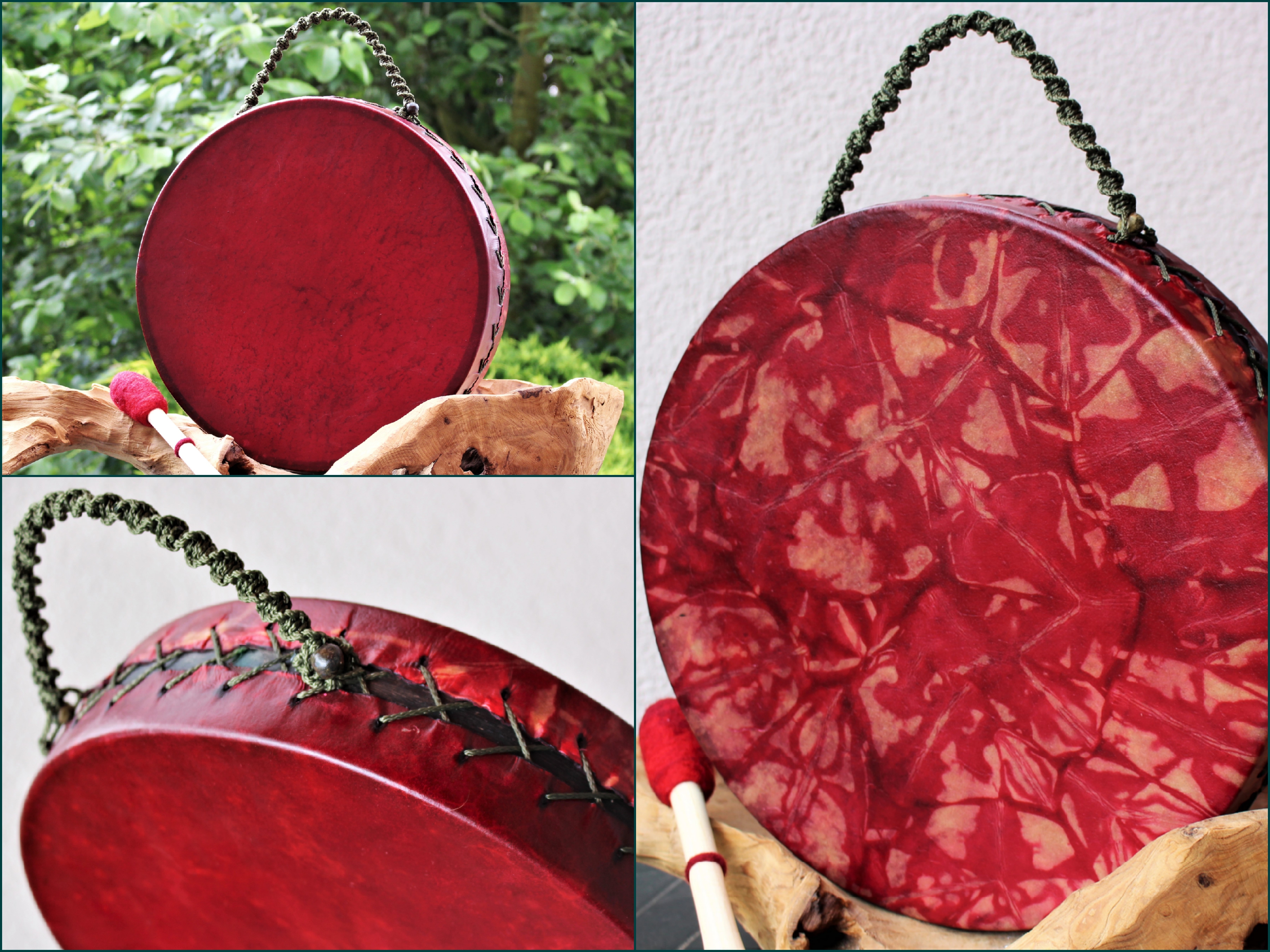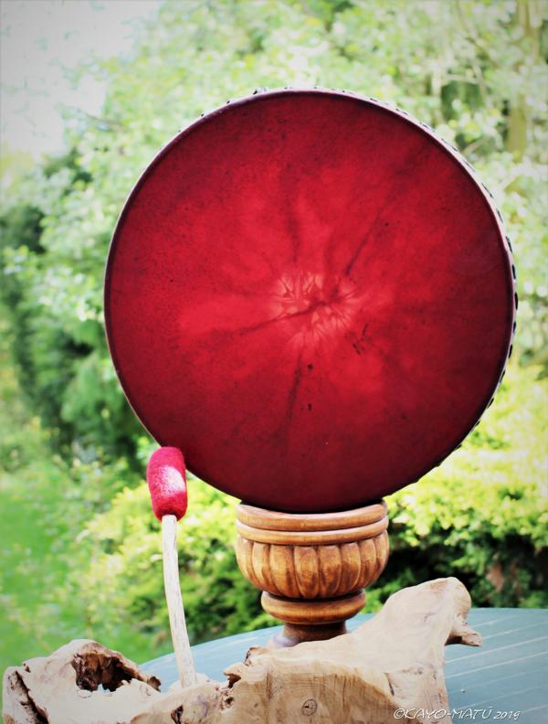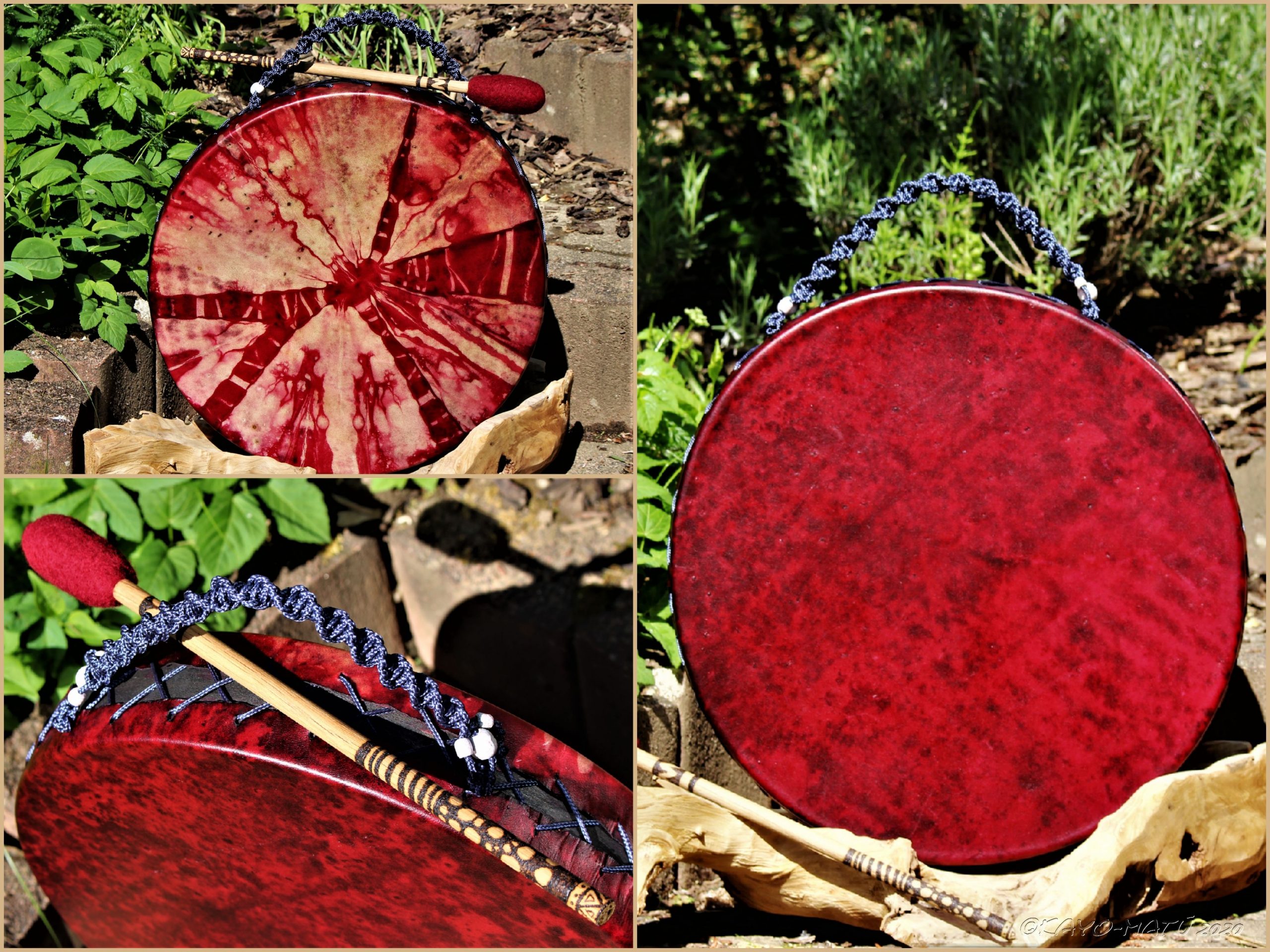 Die Acalayo ist meine eigene Kreation, inspiriert von den Medicine Drums der First Nations Indianer. Ihre einzigartige Bauweise macht sie zu einem besonderen Klangerlebnis: Die komplette Spannschnur wurde zu einem Griff verflochten, wodurch sich die Vibration beim Spielen über die Handinnenfläche, den Arm hinauf bis in den gesamten Körper verteilt.