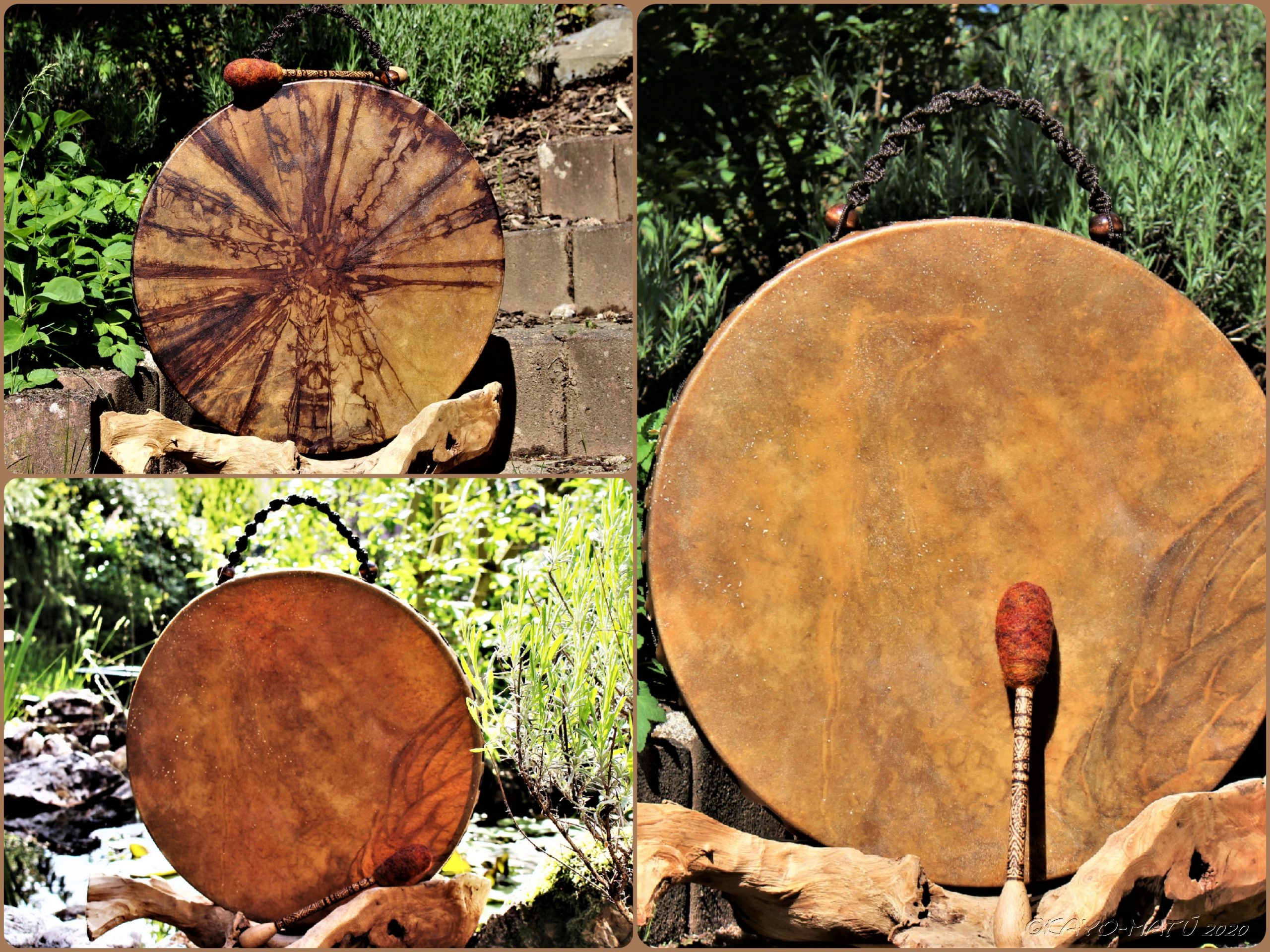 Diese Trommel kann nicht nur als Instrument genutzt werden, sondern eignet sich auch als Rassel und Meeres-Trommel. Im 35er Format entfaltet sie ihre volle Stärke, insbesondere bei fester Spannung, die sie perfekt für den Einsatz in Schwitzhütten macht. Ihre tiefe Verbundenheit mit der Natur und ihre kraftvolle Resonanz machen sie zu einem unverwechselbaren Begleiter für rituelle und musikalische Anwendungen.
